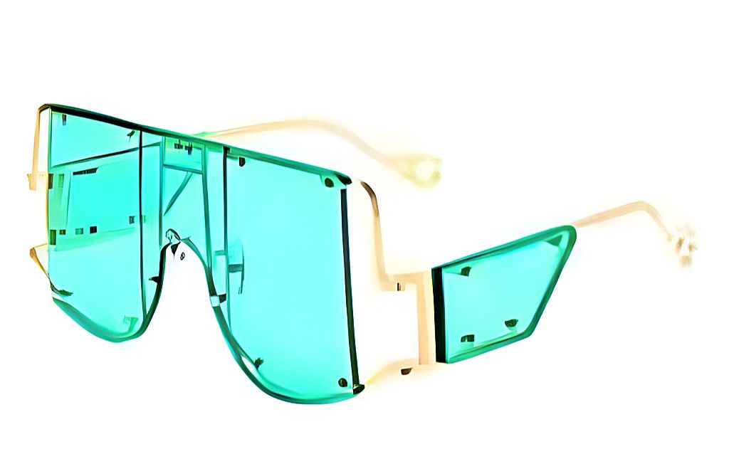 Emerald Flash – Gold / Green fashion Square Oversized Sunglasses – Unisex Luxury Mirror Shades with Metal Rivet Detail | Trendy Eyewear for Women & Men