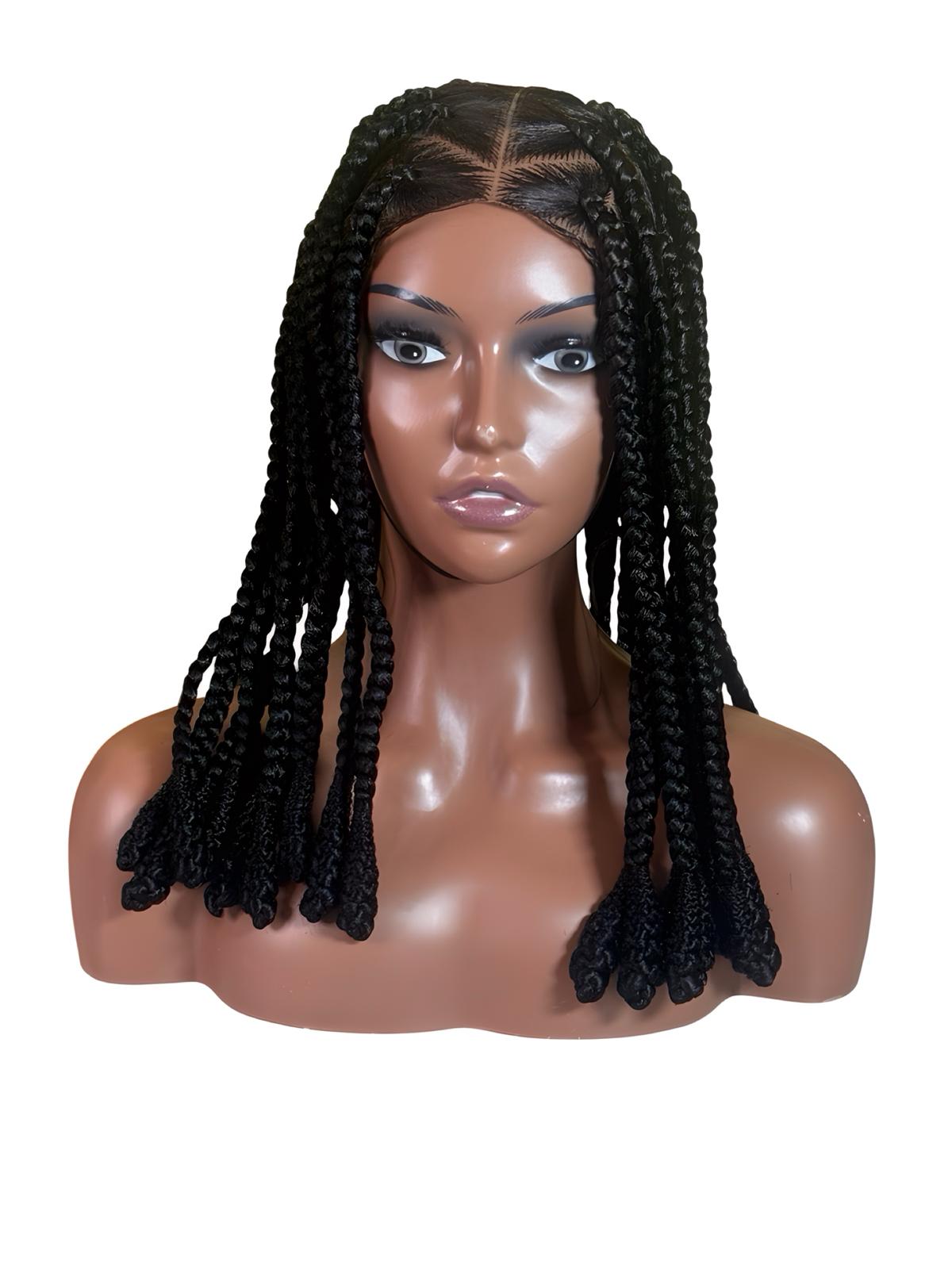 Jet Black Braided Wig with Baby Lace – Medium Length