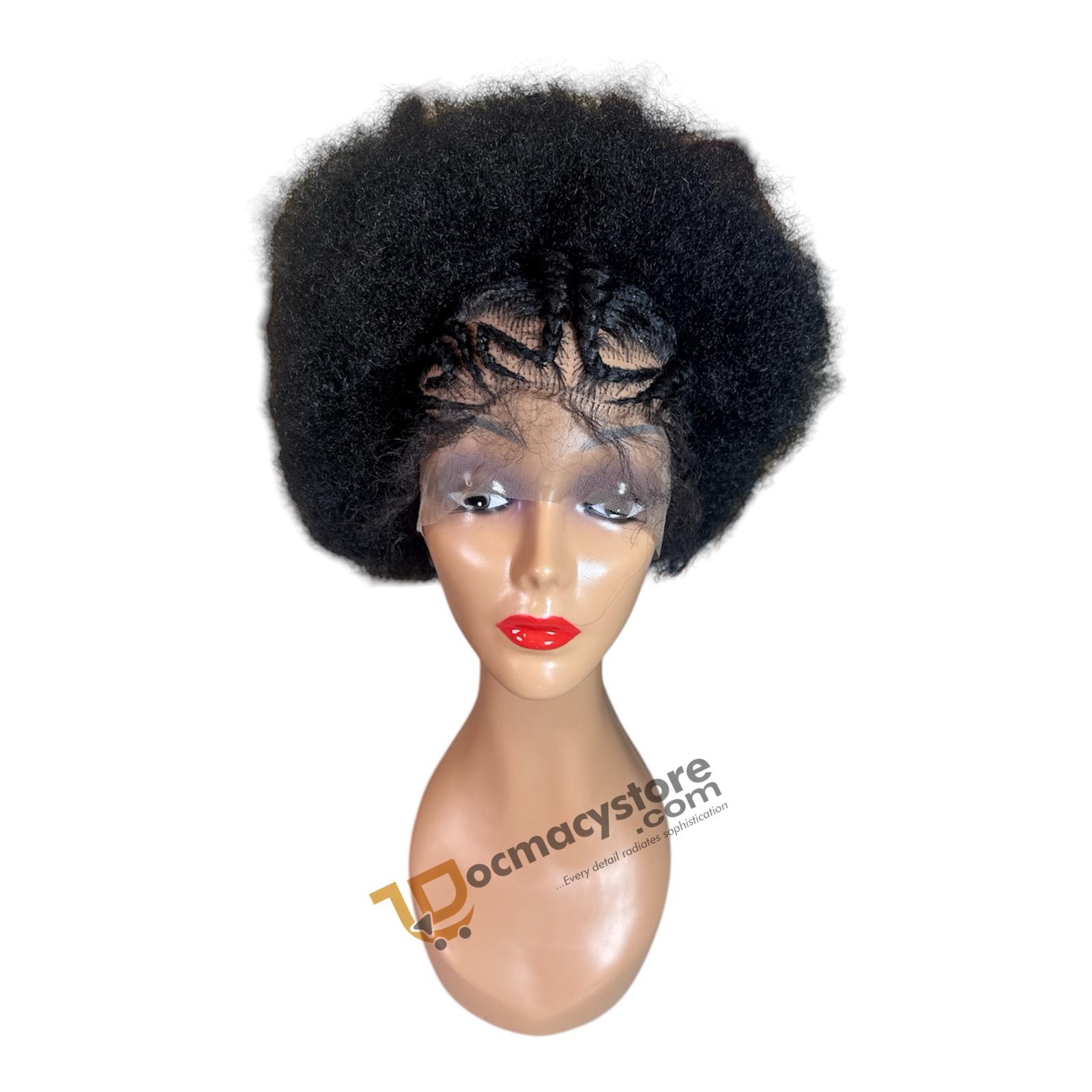 Gorgeous lace-front wig in a natural black shade, featuring a voluminous afro style with a defined braided parting. Designed with a baby lace front for a seamless and realistic hairline, this lightweight wig is perfect for making a bold statement on any occasion. 2pcs, £45