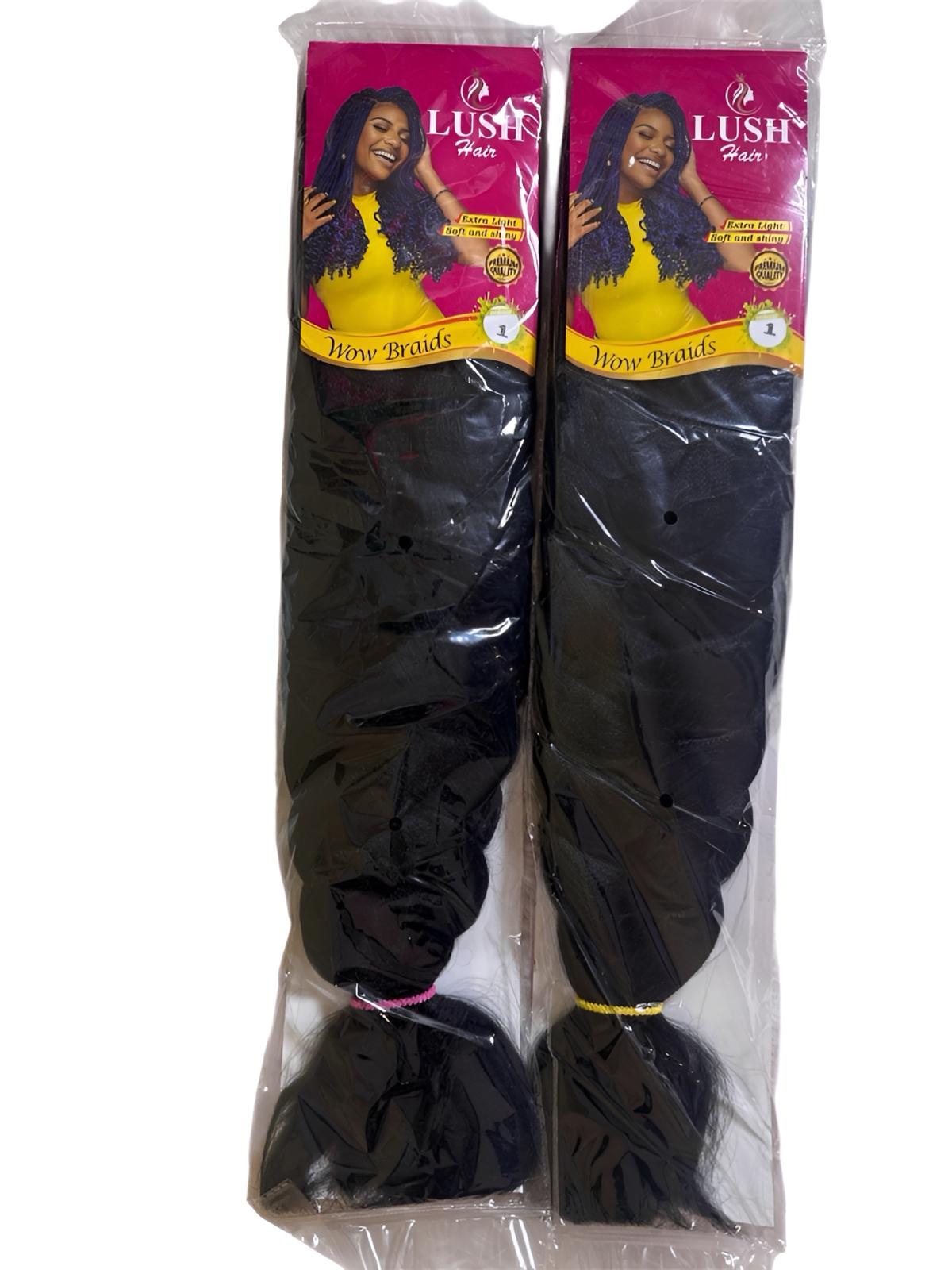 Lush Hair Wow Braids color 1 (Jet Black), soft and lightweight synthetic fiber. Perfect for all braid styles. Brand new in original packaging.